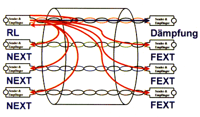 Da für den Signalempfang natürlich der Störabstand entscheidend ist und das Signal am anderen Ende gedämpft ankommt, bezieht man den gemessenen FEXT-Wert nicht auf das Sendesignal in seiner Originalstärke, sondern auf den Empfangspegel. ELFEXT ist also ein errechneter Wert, der aus der Subtraktion der Dämpfung vom gemessenen FEXT entsteht und in dB angegeben wird. Anders als NEXT kann FEXT richtungsabhängig sein, darum gibt es für jedes Ende der gemessenen Verbindung 12 Messwerte (Paarkombinationen), insgesamt also 24.
