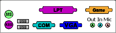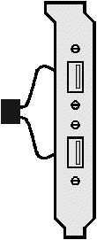 | Es ist kein Adapter erforderlich, falls die beiden Anschlüsse für USB-Geräte bereits im Backpanel von ATX-Mainboards integriert sind (siehe Bild). Bei neueren Mainboards können über einen Adapter allerdings zwei oder sogar vier weitere USB-Schnittstellen nach außen geführt werden. |