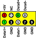 | Da es einige Adapter nicht mehr gibt, kann man auch andere verwenden und durch Umstecken der Pin-Belegung anhand der Tabelle modifizieren (schwarz an schwarz, usw.). Den aufgeführten Adapter gibt es in zwei Varianten: entweder ist der Anschluß als 2x5-Pin-Block ausgeführt oder er hat zwei einzelne 1x5-Pin-Anschlüsse. |